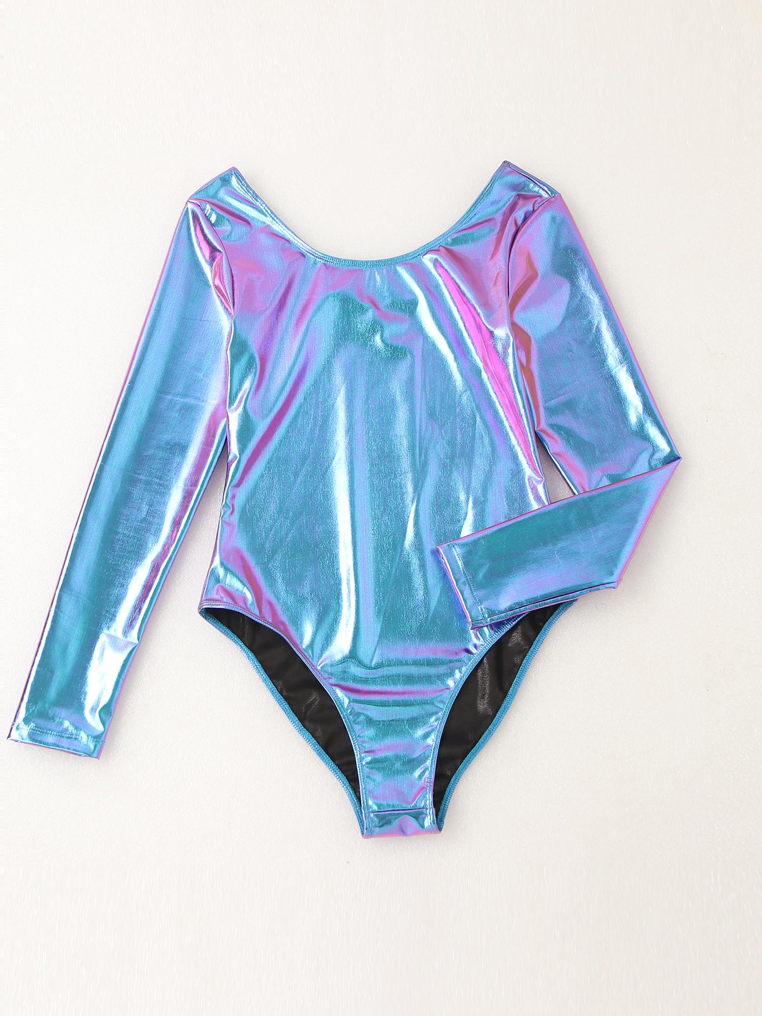 Womens adult wetlook dance leotard, stretchy fabric.